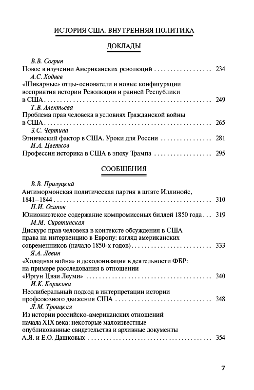 Рубрика «История США. Внутренняя политика» открывается докладом д.и.н., проф. В.В. Согрина «Новое в изучении Американских революций». В этой рубрике анализируются также современные особенности восприятия в США отцов-основателей, этнический фактор в США как урок для развития современной России, особенность профессии историка в США в эпоху Трампа и др.