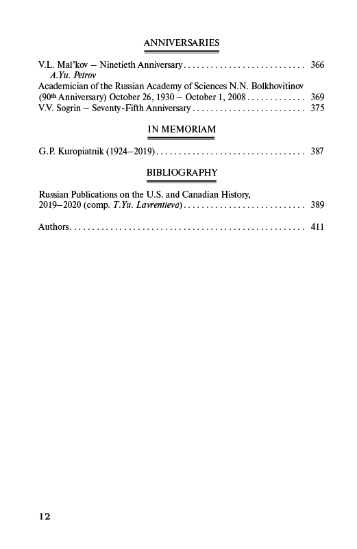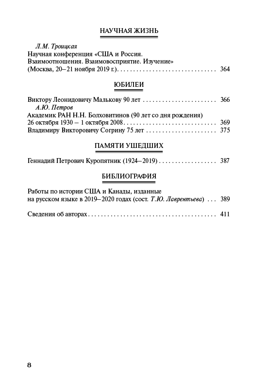 Сохранены традиционные рубрики, среди них «Библиография», в которой публикуется список работ на русском языке по истории США и Канады, вышедших в свет в 2019–2020 гг.