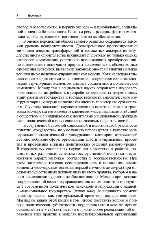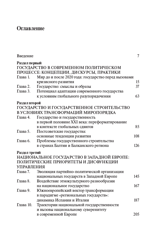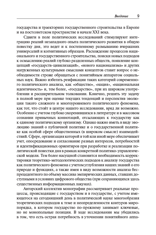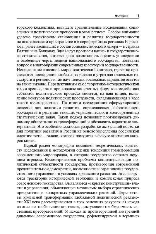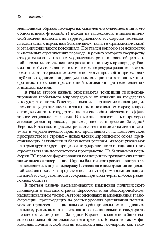 В монографии рассматривается вопрос о природе современного государства, сформулирована приоритетная для политической науки повестка дня исследований государства в контексте становления новых политических пространств. Авторы анализируют трансформации национального государства в условиях глобальной нестабильности и актуальные тенденции развития государственности в странах Европейского союза и на постсоветском пространстве. Выявлены альтернативы переформатирования государства в условиях происходящих сдвигов в мироустройстве, в политическом ландшафте и социальной структуре общества, в ценностях и ориентирах идентичности человека ХХI века. Обоснованы прогностические оценки изменения политико-управленческих функций государства с учетом усложнения современной социальной реальности и появления новых вызовов безопасности и развитию.
