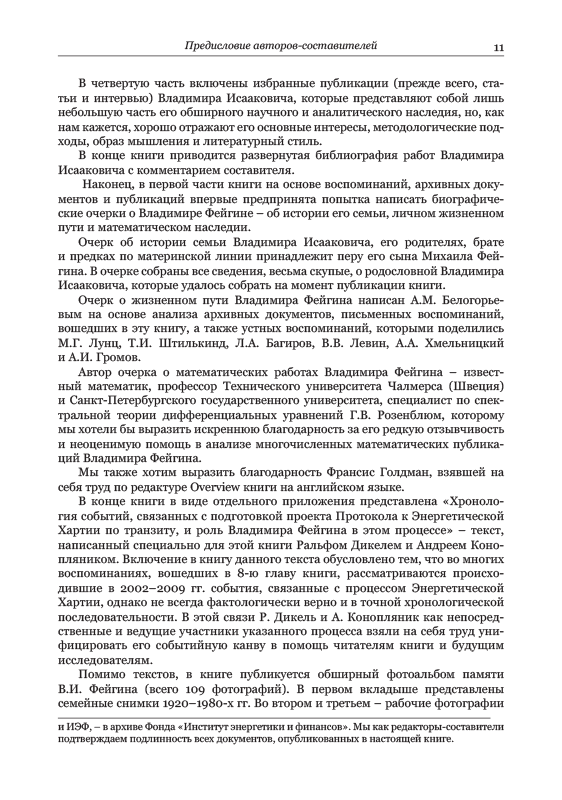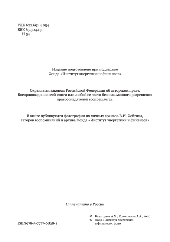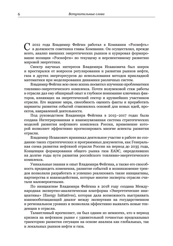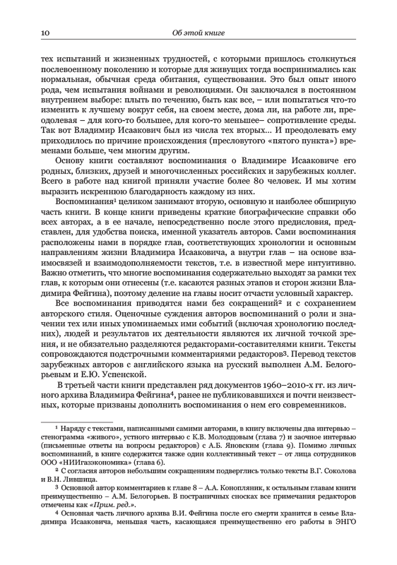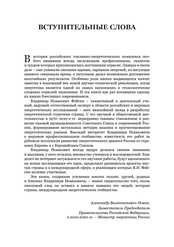 Книга предназначена для коллег, друзей, родных и близких В.И. Фейгина, а также для всех интересующихся историей развития российской газовой промышленности и топливно-энергетического комплекса в 1970–2010-е гг., энергетического сотрудничества России и ЕС, а также математической науки в СССР в 1960–1980-е гг.