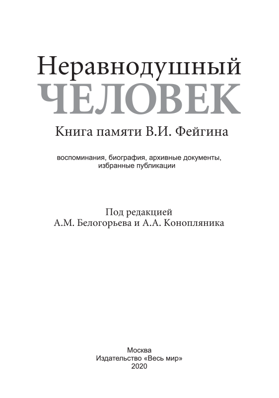 Неравнодушный человек: Книга памяти В.И. Фейгина
