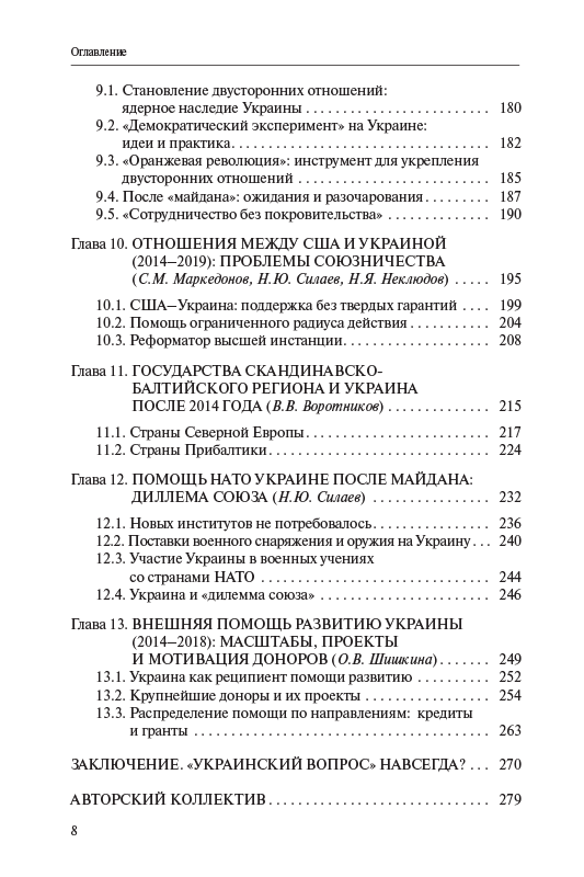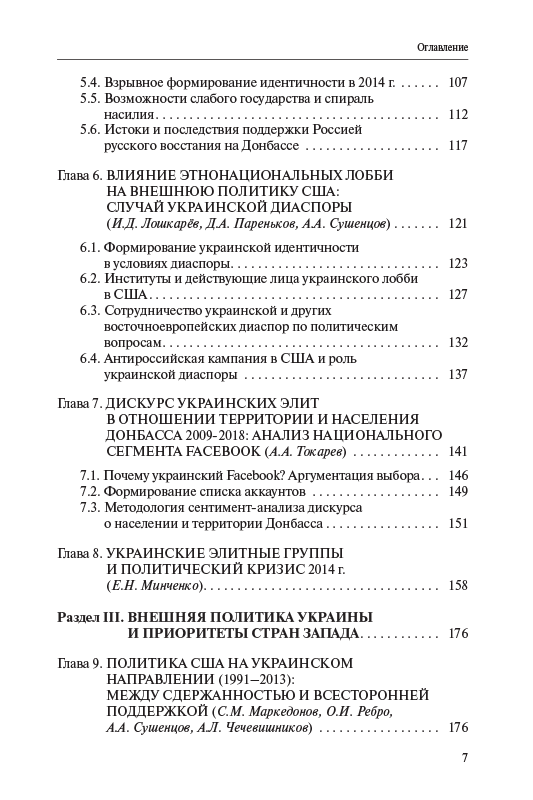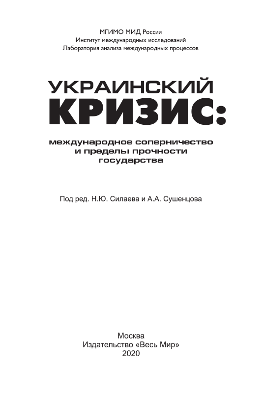 Издание посвящено анализу развития ключевых аспектов украинского кризиса. В нем последовательно разбираются проблемы российско-украинской экономической взаимозависимости и судьба двусторонних отношений после событий 2014 г., анализируется структура украинских элитных групп, а также исследуются мотивы политики стран Запада, которые проигнорировали российские интересы и «красные линии» на Украине. Отдельный раздел посвящен вопросам проживающих на территории Украины общин: положению русскоговорящих на Украине, а также влиянию украинской диаспоры на процесс принятия внешнеполитических решений в США. В издании рассматривается внешняя политика Украины: проблемы её двусторонних отношений с Россией, США и Европейским союзом, а также вопросы внешнего влияния на внутриполитическую ситуацию на Украине. Завершает книгу сценарный анализ дальнейшего хода украинских событий как во внутренней политике, так и на международном поле.