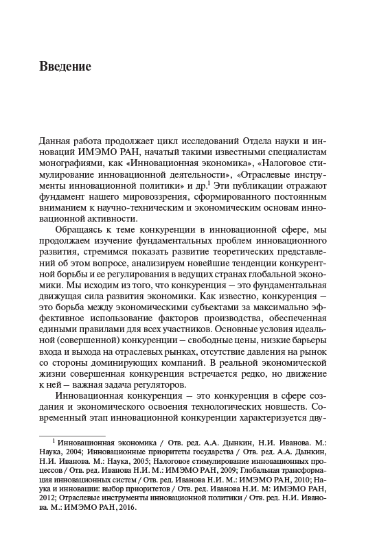 Книга подготовлена авторским коллективом отдела науки и инноваций ИМЭМО РАН. Впервые рассмотрен комплекс вопросов инновационной конкуренции на национальных, отраслевых и глобальных рынках высоких технологий, а также формирование нового антимонопольного регулирования в данной сфере, проходящее в США и Евросоюзе. Показано, что борьба за лидерство в сфере науки и инноваций обостряется, идет поиск баланса национального и глобального в инновационных стратегиях в ситуации, когда открытость инновационных систем становится и условием, и риском лидерства.