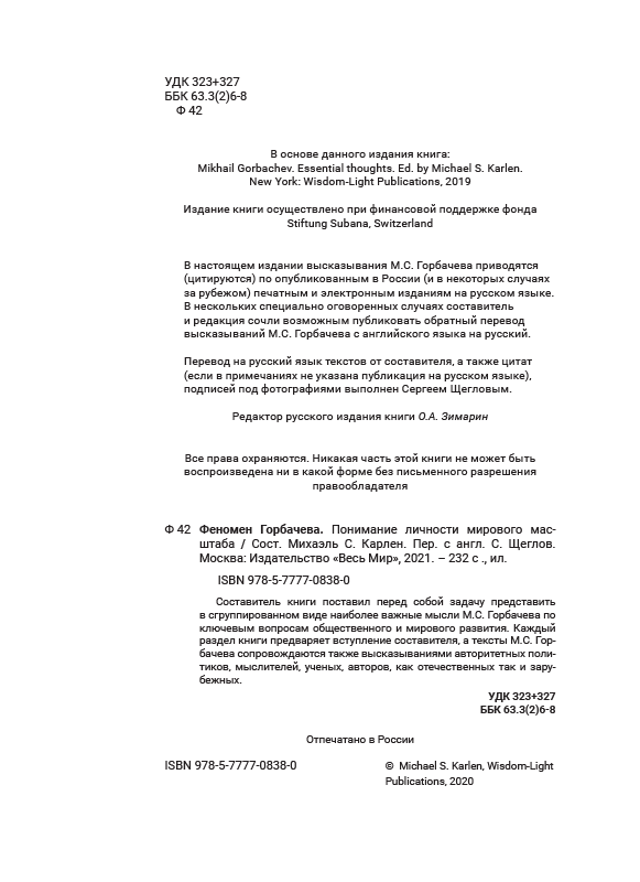 - Издательство «Весь Мир» от всей души поздравляет лауреата Нобелевской премии мира Михаила Сергеевича Горбачева с Днем рожденья.