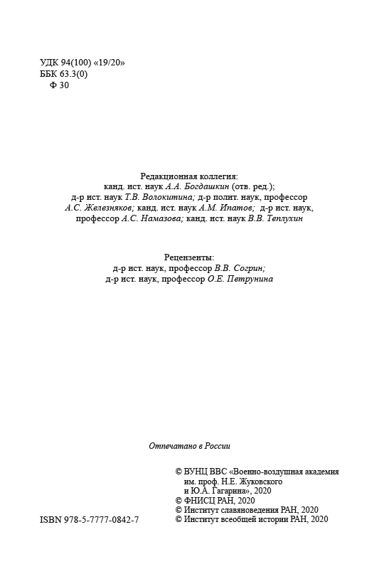 - А. А. Богдашкин, Т. В. Волокитина, А. С. Железняков, А. М. Ипатов, А. С. Намазова Настоящий сборник статей основан на материалах проходившей в мае 2019 г. в Военном учебно-научном центре Военно-воздушных сил «Военно-воздушная академия имени профессора Н. Е. Жуковского и Ю....