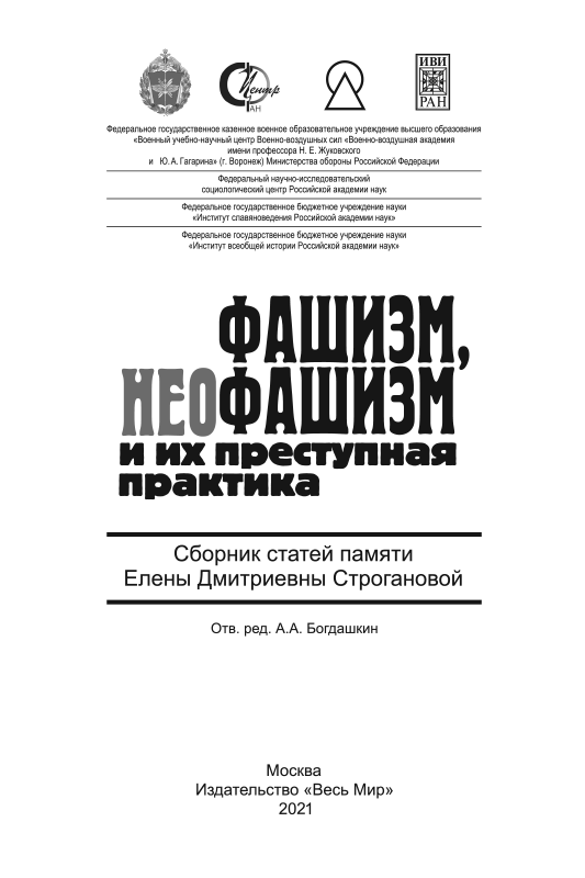 - К выходу в свет издания: Фашизм, неофашизм и их преступная практика. Сборник статей памяти Елены Дмитриевны Строгановой. Под редакцией А.А. Богдашкина.