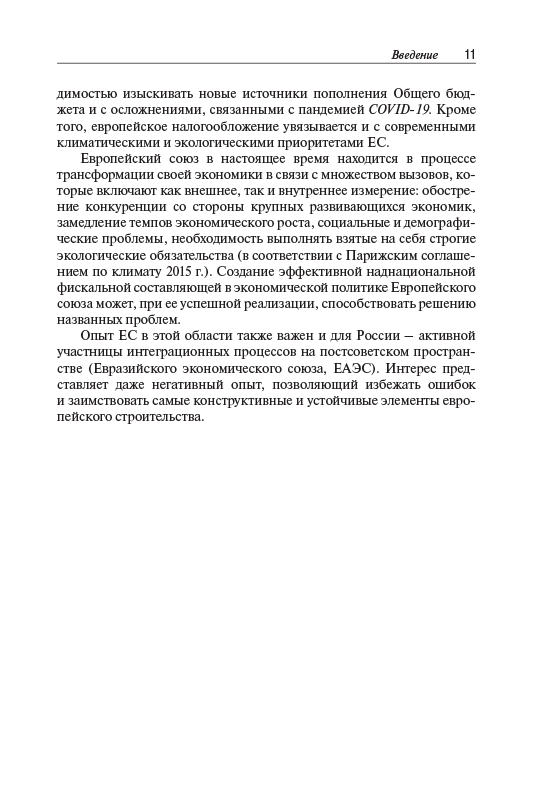 В монографии рассматривается наднациональная фискальная политика в Европейском союзе. Проанализированы основные механизмы системы фискального регулирования в ЕС, роль его основных элементов – Пакта стабильности и роста, Фискального пакта для реализации фискальной политики. Дан анализ эволюции Общего бюджета ЕС и Многолетних финансовых программ. Рассмотрены европейские налоги и проекты наднациональных налогов и их роль в финансировании Общего бюджета. Выявлены постепенное возрастание роли наднациональной фискальной политики и повышение жесткости фискального регулирования в ЕС. Издание предназначено для исследователей, преподавателей, аспирантов, а также читателей, интересующихся европейским опытом и проблемами фискальной политики.