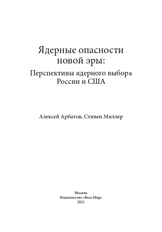 - У этой небольшой книги — Ядерные опасности новой эры: перспективы ядерного выбора России и США — два автора: Алексей Арбатов и Стивен Миллер. Собственно их статьи и составляют ее основное содержание. В контексте последних событий и встречи в Женеве она особо актуальна и значима.