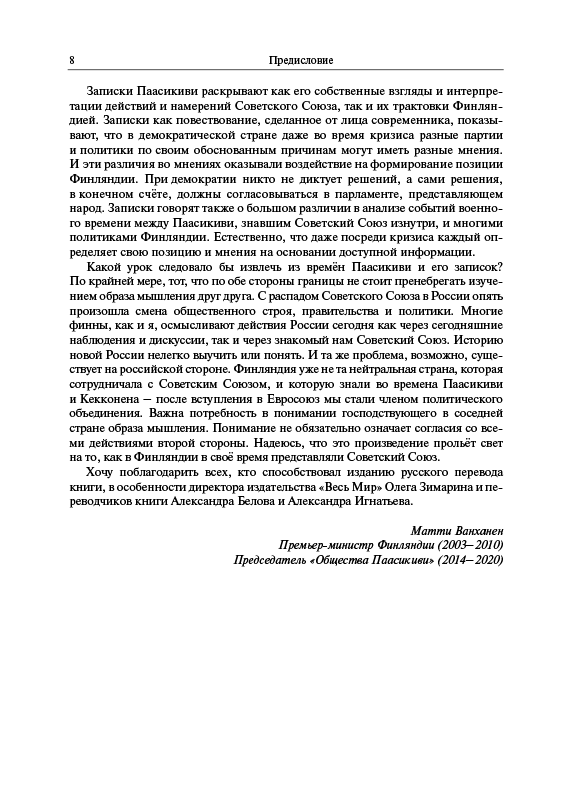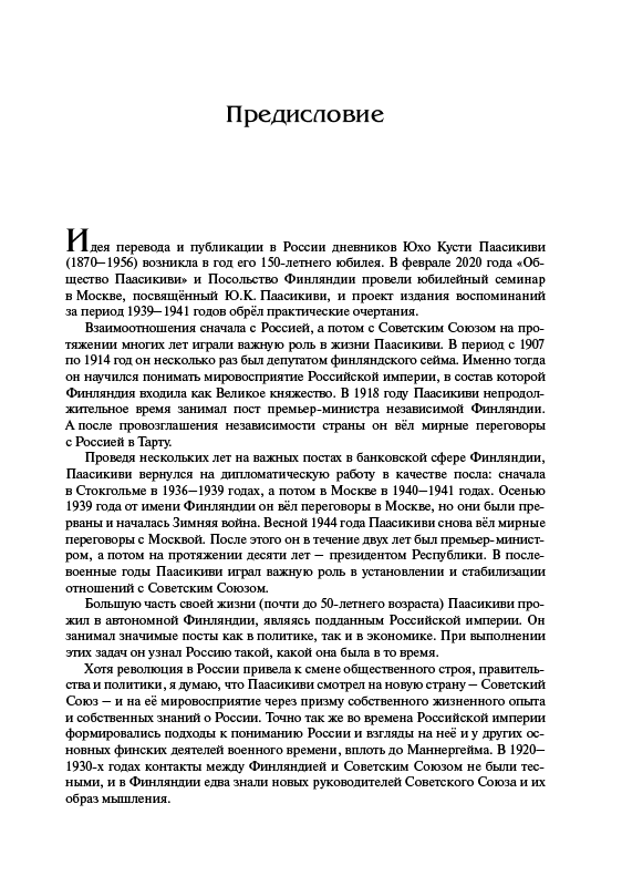 - Идея перевода и публикации в России дневников Юхо Кусти Паасикиви (1870–1956) возникла в год его 150-летнего юбилея. В феврале 2020 года «Общество Паасикиви» и Посольство Финляндии провели юбилейный семинар в Москве, посвящённый Ю. К. Паасикиви, и проект издания воспоминаний...