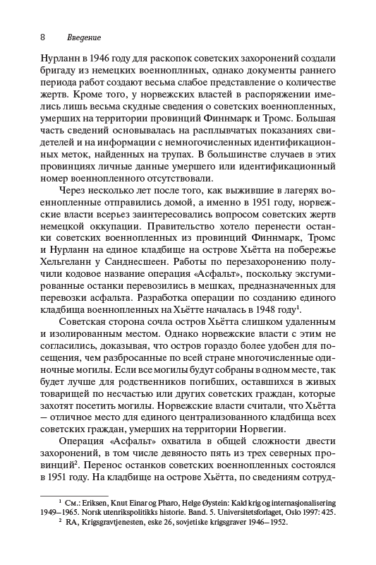 Это книга о советских военнопленных в Норвегии в годы Второй мировой войны. Труд тысяч военнопленных из разных стран, но преимущественно из СССР, использовался нацистами при строительстве военных объектов на севере страны. Многие из них – известные и неизвестные узники – погибли в плену и были захоронены в различных местах на территории страны. В годы холодной войны норвежские власти приняли решение о переносе останков советских военнопленных из двух сотен мест на одно кладбище на острове Хьётта. Эта операция, получившая название «Асфальт», была осуществлена в 1951 г. и вызвала резко негативную реакцию норвежской общественности, простых норвежцев, посчитавших, что при этом к памяти павших не было проявлено должного уважения. Автор книги М.Н. Солейм много лет занимается изучением судеб советских военнопленных.