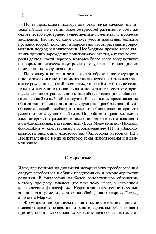 Распространенные в наше время книги по политологии представляют собой попросту описания прежних и современных форм правления государств и мнения об этом, высказанные мыслителями разных времен. Следует эти работы оценивать не как науку «Политология», а лишь как классификации того, что было, и того, что есть. Только базируясь на соответствующих научных теориях о закономерности развития всего сущего на Земле, следует объяснять тот этап эволюции человечества, при котором сформировались государства и политическая власть как форма их организации. Поэтому автор подчеркивает научный характер своей книги.