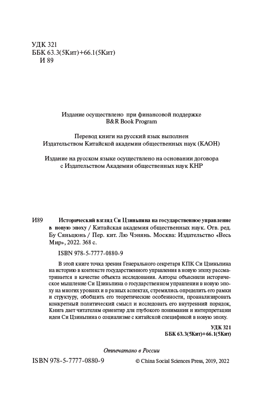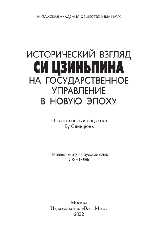 - В Китайской академии общественных наук подготовили книгу «Исторический взгляд Си Цзиньпина на государственное управление в новую эпоху». Теперь книга вышла в свет на русском языке.