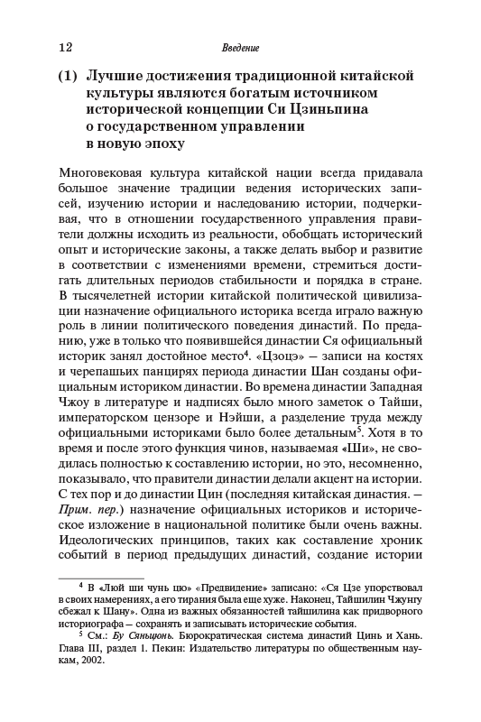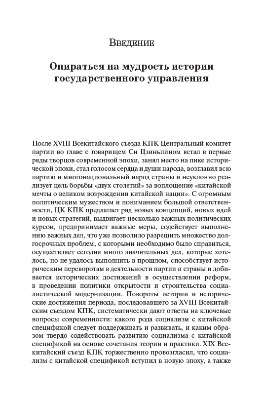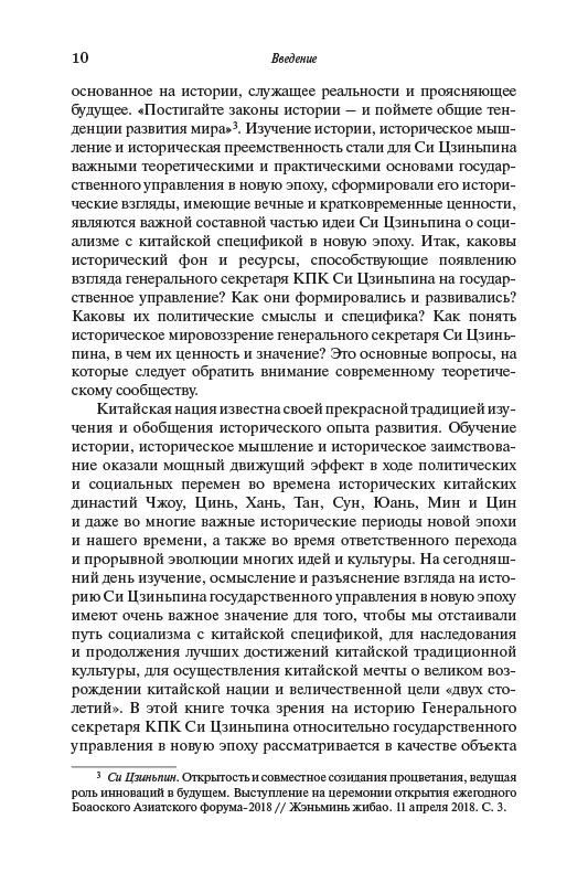 В этой книге точка зрения Генерального секретаря КПК Си Цзиньпина на историю в контексте государственного управления в новую эпоху рассматривается в качестве объекта исследования. Авторы объяснили историческое мышление Си Цзиньпина о государственном управлении в новую эпоху на многих уровнях и в разных аспектах, стремились определить его рамки и структуру, обобщить его теоретические особенности, проанализировать конкретный политический смысл и исследовать его внутренний порядок, Книга дает читателям ориентир для глубокого понимания и интерпретации идеи Си Цзиньпина о социализме с китайской спецификой в новую эпоху.