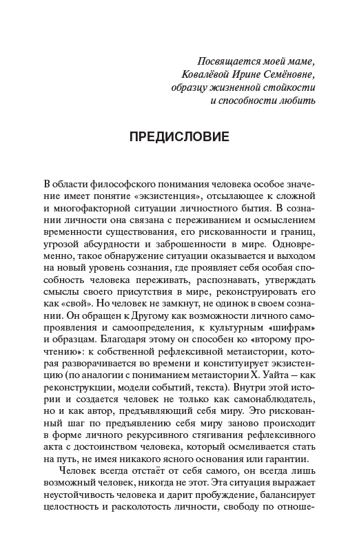 • Посвящается моей маме, Ковалёвой Ирине Семёновне, образцу жизненной стойкости и способности любить В области философского понимания человека особое значение имеет понятие «экзистенция», отсылающее к сложной и многофакторной ситуации личностного бытия. В сознании личности...