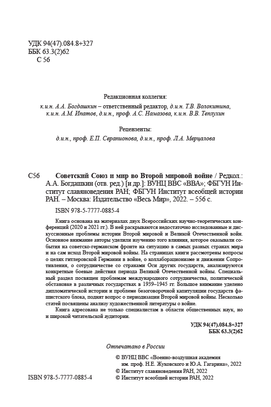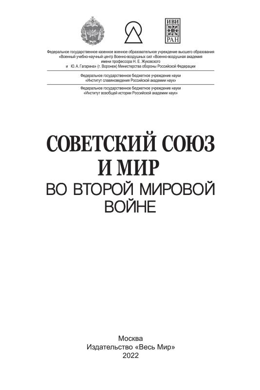- Настоящая книга «Советский Союз и мир во Второй мировой войне» основана на докладах двух Всероссийских научно-теоретических конференций — «Вторая мировая война и ее роль в истории человечества» (декабрь 2020 г.) и «СССР и мир в 1941—1945 гг.» (июль...