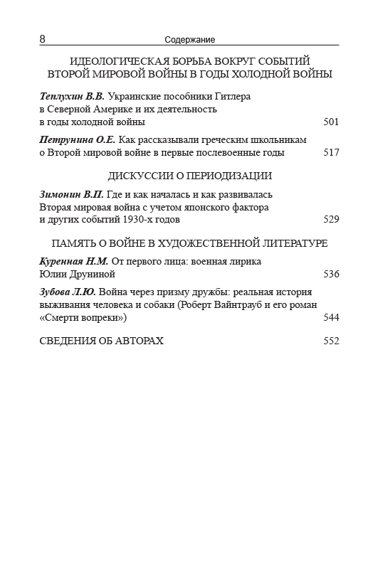 Книга основана на материалах двух Всероссийских научно-теоретических конференций (2020 и 2021 гг.). В ней раскрываются недостаточно исследованные и дискуссионные проблемы истории Второй мировой и Великой Отечественной войн. Основное внимание авторы уделили изучению того влияния, которое оказывали события на советско-германском фронте на ситуацию в самых разных странах мира и на сам исход Второй мировой войны. На страницах книги рассмотрены вопросы о целях гитлеровской Германии в войне, о коллаборационизме и движении Сопротивления, о сотрудничестве со странами Оси других государств, анализируются конкретные боевые действия периода Великой Отечественной войны. Специальный раздел посвящен проблемам международного сотрудничества, политической обстановке в различных государствах в 1939–1945 гг. Большое внимание уделено дипломатической истории и проблеме безоговорочной капитуляции государств фашистского блока, поднят вопрос о периодизации Второй мировой войны. Несколько статей посвящены анализу художественной литературы о войне.