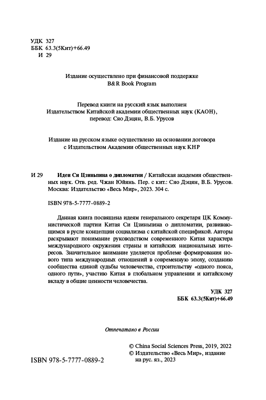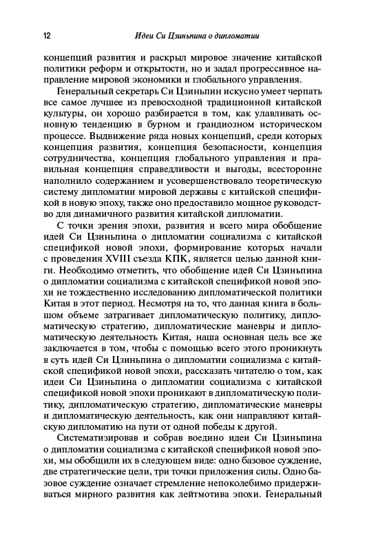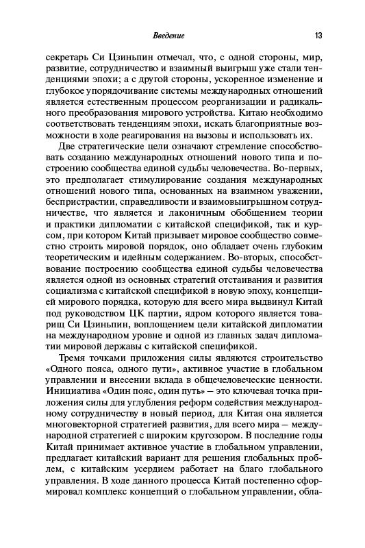 Данная книга посвящена идеям генерального секретаря ЦК Коммунистической партии Китая Си Цзиньпина о дипломатии, развивающимся в русле концепции социализма с китайской спецификой. Авторы раскрывают понимание руководством современного Китая характера международного окружения страны и китайских национальных интересов. Значительное внимание уделяется проблеме формирования нового типа международных отношений в современную эпоху, созданию сообщества единой судьбы человечества, строительству «одного пояса, одного пути», участию Китая в глобальном управлении и китайскому вкладу в общие ценности человечества.