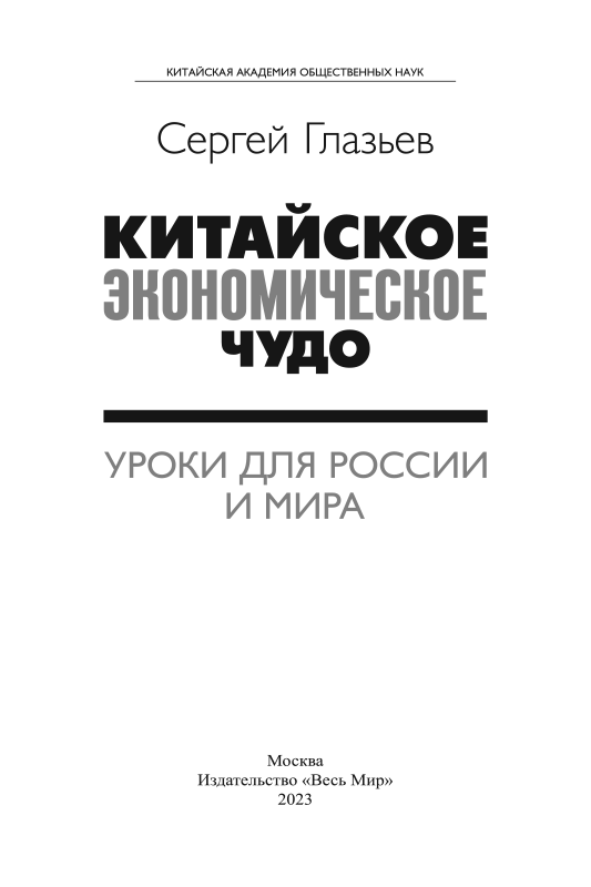 - «Китайское экономическое чудо. Уроки для России и мира» — так называется новая книга Сергея Глазьева, готовящаяся к выходу и на китайском языке.