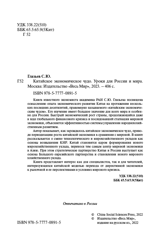 Книга известного экономиста академика РАН С.Ю. Глазьева посвящена осмыслению опыта экономического развития Китая на протяжении нескольких последних десятилетий, правомерно называемого «китайским экономическим чудом». Его изучение имеет большое значение для всего мира и особенно для России. Быстрый экономический рост страны, продолжающийся даже в ходе глобального финансового кризиса и последовавшей стагнации мировой экономики, объясняется эффективностью системы управления народнохозяйственным развитием.