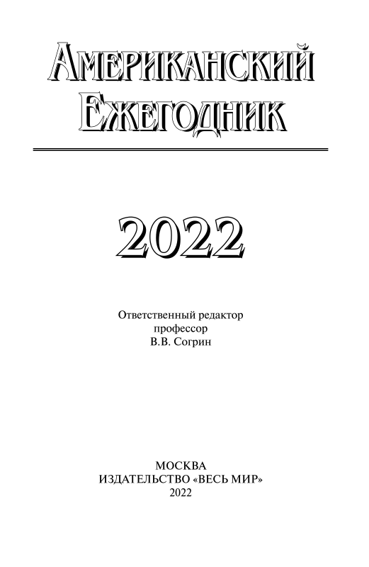 «Американский ежегодник 2022» содержит статьи ведущих российских историков-американистов и канадоведов.