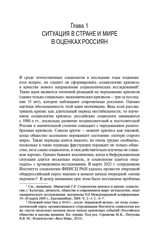 - «Ситуация в стране и мире в оценках россиян» — так называется первая из девяти глава книги, но, пожалуй, именно это название отражает общий характер всего глубокого и отлично построенного исследования.
