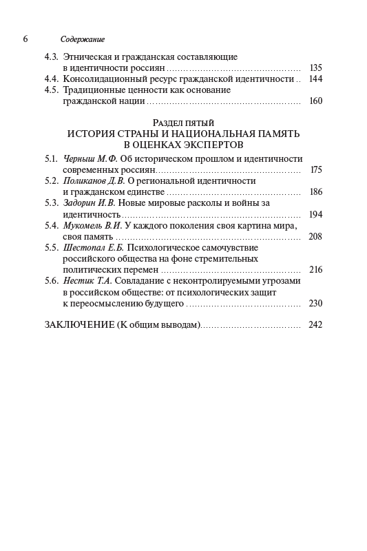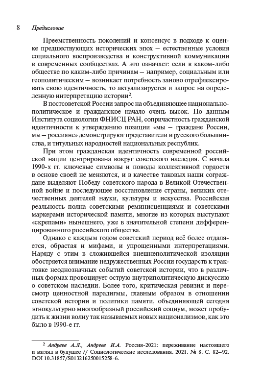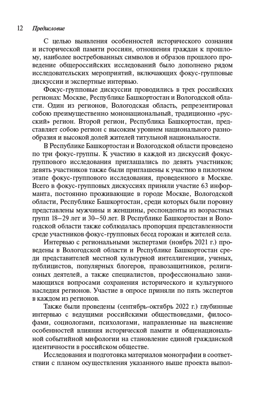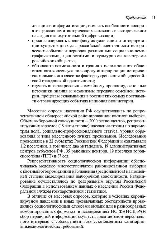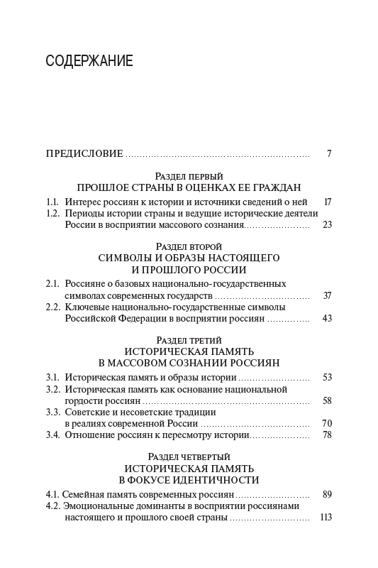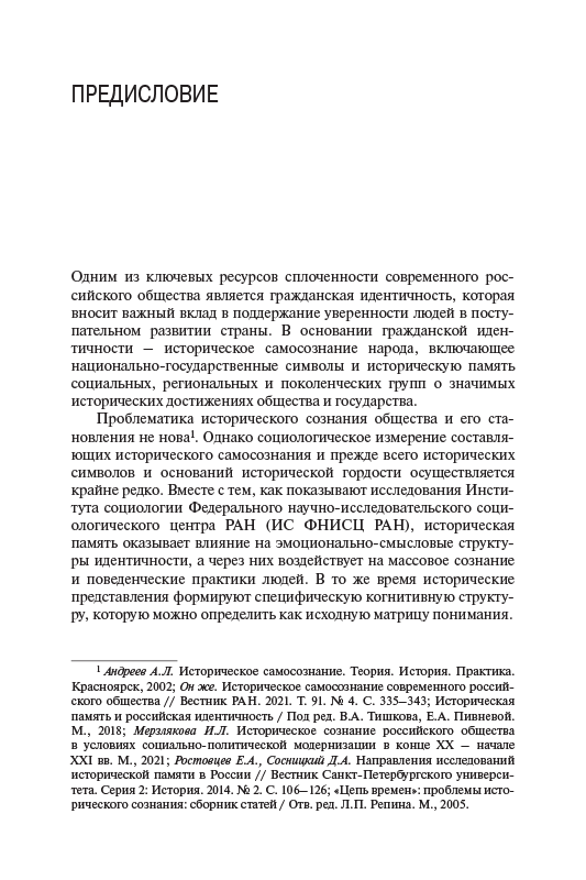 В книге на основании комплексного и многоаспектного подхода рассматривается состояние исторического сознания россиян в условиях современных вызовов. При этом выявляются интерес наших сограждан к истории и фактическим сведениям о ней, их оценки исторических периодов развития страны и ведущих исторических деятелей. Рассматриваются восприятие россиянам национально-государственных символов в контексте исторической памяти, а советские и несоветские традиции – в реалиях современной России. Особое внимание уделяется анализу отношения наших сограждан к отечественной истории, к формированию общероссийской идентичности и к возросшей роли в этом процессе семейной памяти.
