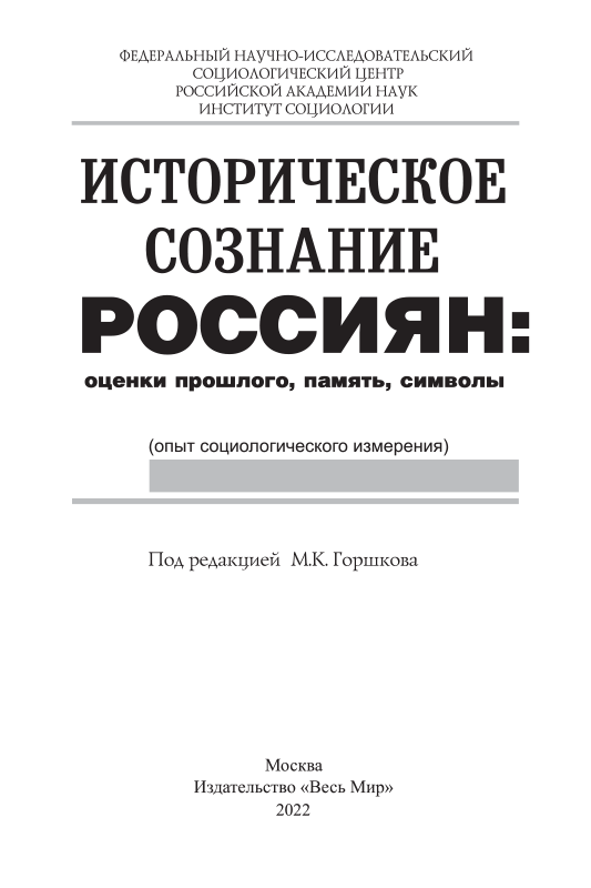 Историческое сознание россиян: оценки прошлого, память, символы (опыт социологического измерения);