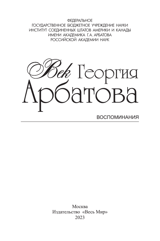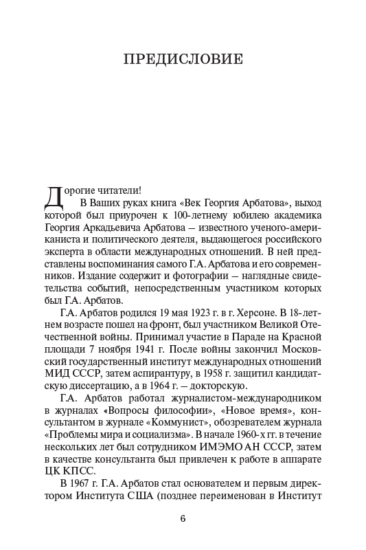 - Дорогие читатели! В Ваших руках книга «Век Георгия Арбатова», выход которой был приурочен к 100-летнему юбилею академика Георгия Аркадьевича Арбатова — известного ученого-американиста и политического деятеля, выдающегося российского эксперта в области международных отношений....