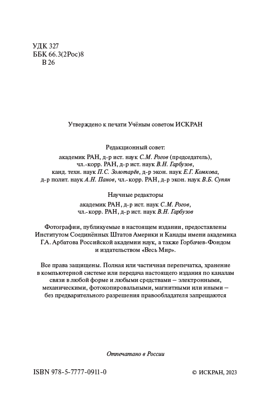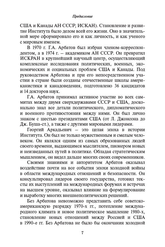 Книга подготовлена к 100-летнему юбилею академика Георгия Аркадьевича Арбатова – известного ученого-американиста и политического деятеля, выдающегося российского эксперта в области международных отношений. Без Г.А. Арбатова невозможно представить себе советско- американскую разрядку 1970-х годов, потепление международного климата и новое политическое мышление 1980-х, становление новых отношений между Россией и США в 1990-е годы. Без него не было бы окончания холодной войны и благотворного изменения мировой политики. В книге представлены воспоминания самого Г.А. Арбатова и его современников. Издание содержит и фотографии – наглядные свидетельства событий, непосредственным участником которых он был.