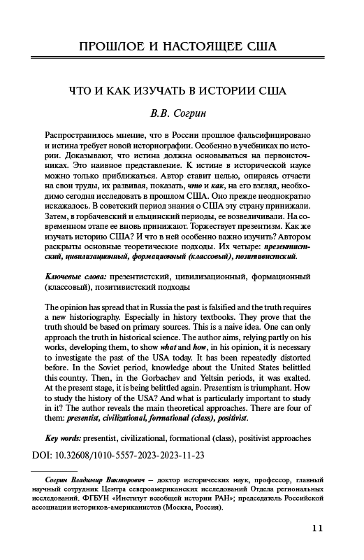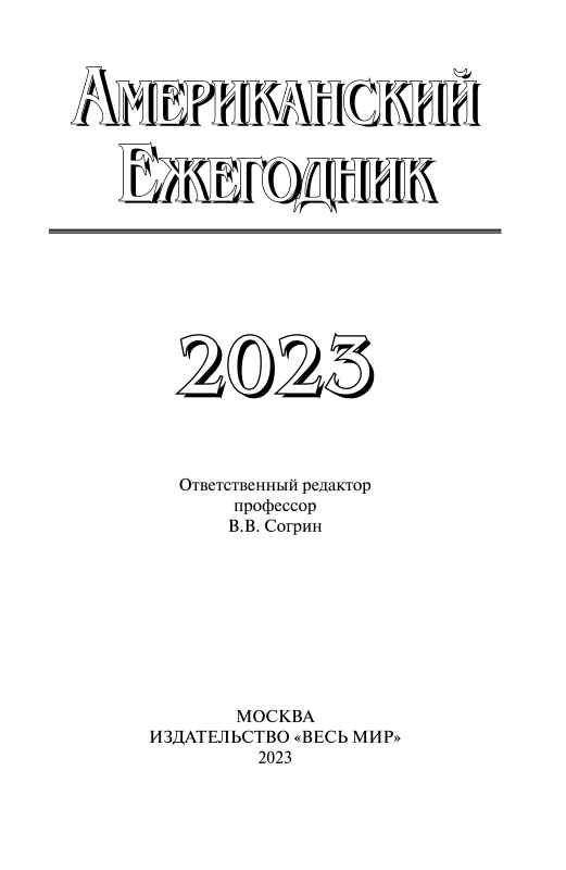 - У ежегодника 2023 года замечательная тема: Что и как изучать в истории США. Именно так названа статья В. В. Согрина, открывающая книгу. Но все его дальнейшее содержание помогает раскрывать эту главную тему.