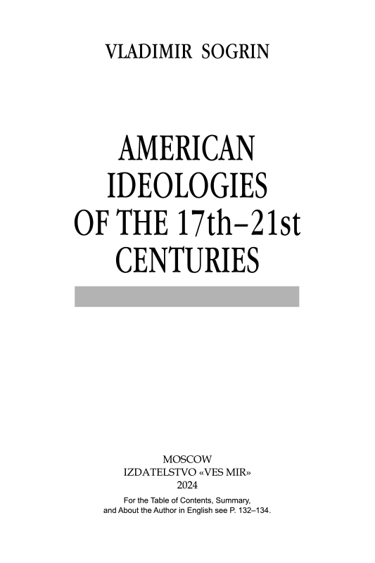 На примере Соединенных Штатов Америки в книге рассмотрены мировые идеологии. Главным в США был либерализм. На разных этапах это были классический либерализм, социальный либерализм, неолиберализм. Консерватизм вырос из классического либерализма, вобрал социал-дарвинизм, включает с конца ХХ в. неоконсерватизм и палеоконсерватизм. На рубеже XIX–XX вв. и в 1930–1940-е гг. в США был известен социализм в разных вариантах.