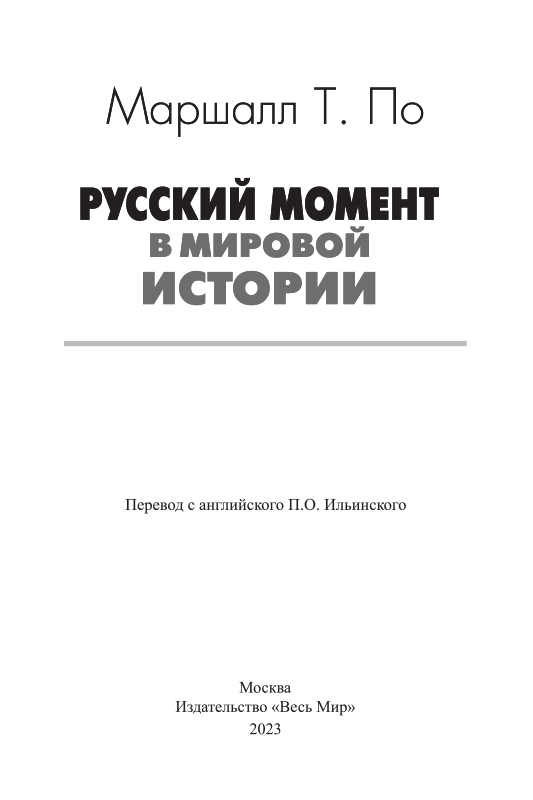 - Известный американский историк и популяризатор науки Маршалл По написал свою книгу «Русский момент в мировой истории» (The Russian Moment in World History) двадцать лет назад, в 2003 г. Эта небольшая по объему книга и сама авторская концепция российской и мировой...