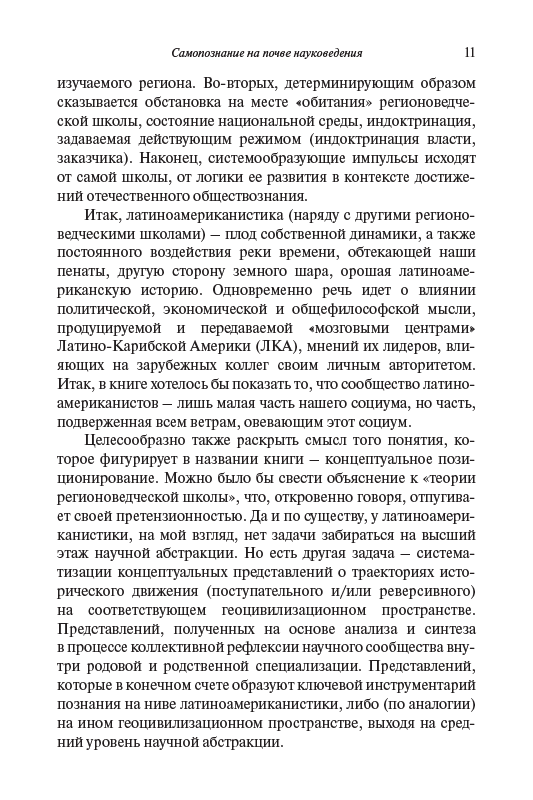 Книга нацелена на выявление и осмысление концептуального содержания, характеризующего становление и развитие регионоведческой школы на материалах отечественной латиноамериканистики. При этом автор отдает предпочтение науковедческому (содержательному) подходу как антитезе наукометрическому формализму.