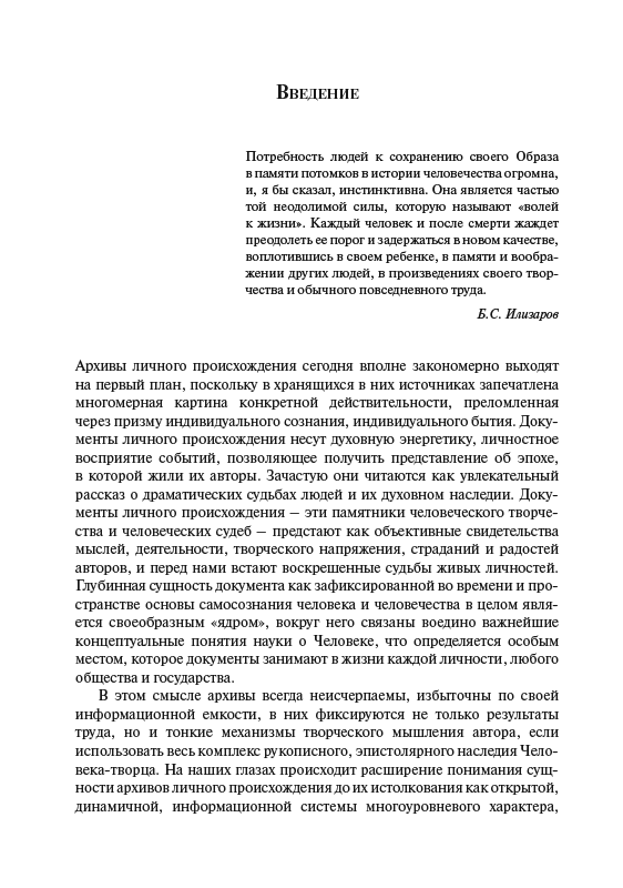 Впервые в отечественной историографии предпринята попытка воссоздания целостной, порой драматической, истории формирования и собирания архивов личного происхождения в России с древнейших времен до наших дней. Показана непрерывность процесса многовекового собирания документального наследия знаменитых и незнаменитых личностей и пути его поиска и выявления в государственных архивах, рукописных отделах музеев и библиотек, в семейных архивах и частных коллекциях. Судьбы рукописей и судьбы людей, их собиравших, и размышлявших над ними, сплелись неразрывно. Документы личного происхождения – эти памятники человеческого творчества и человеческих судеб, источники духовной жизни – предстают как объективные свидетельства мыслей, деятельности, творческого напряжения, печалей и радостей авторов, их мировосприятия, и перед нами встают воскрешенные судьбы живых личностей. Поэтому главная цель монографии – подключить читателя к совместным поискам связи между архивами личного происхождения и имманентно присущим человеку стремлением к самопознанию, выраженном в увековечивании памяти о Человеке, своем месте в пространственно-временном континууме.