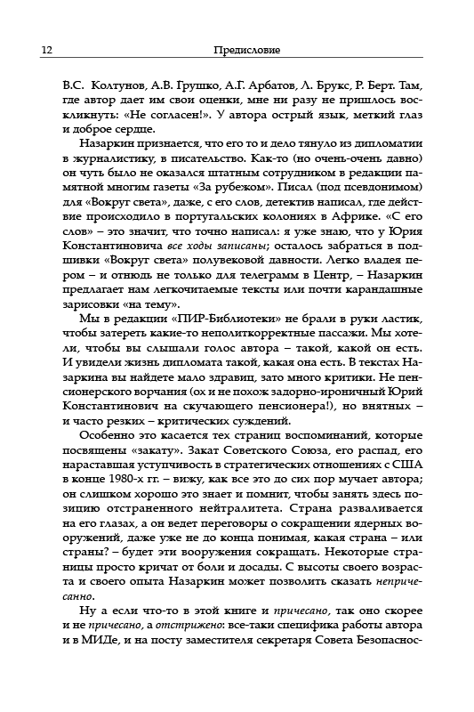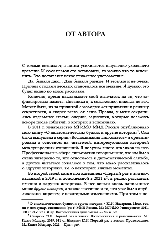 В книге представлены наиболее яркие воспоминания – о жизни и дипломатической работе – Юрия Константиновича Назаркина, Чрезвычайного и Полномочного Посла (в отставке), бывшего заместителя секретаря Совета Безопасности России, члена Экспертного совета ПИР-Центра.