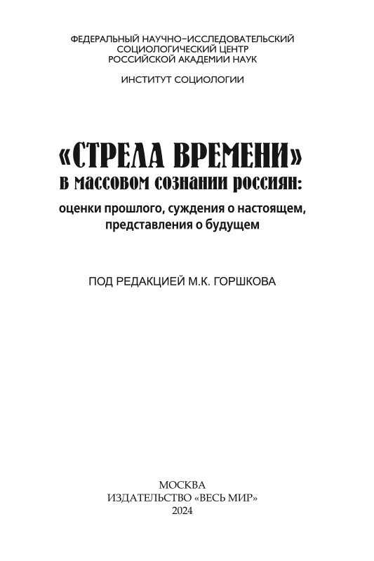 Выша в свет новая книга - «Стрела времени» в массовом сознании россиян: оценки прошлого, суждения о настоящем, представления о будущем - продолжающая фундаментальное исследование нашего восприятия прошлого (см. книгу 2022 г. "Историческое сознание россиян: оценки прошлого память символы (опыт социологического измерения)").