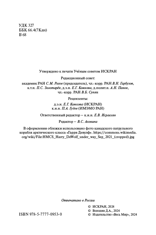Книга посвящена усилиям Канады по приобретению и удержанию прав на различные территории и пространства в Арктике с момента основания доминиона до начала 2020-х годов. Показывается, как менялась для Канады проблема суверенитета на Крайнем Севере: от признания прав на сушу к обеспечению суверенитета над морским пространством и прежде всего над Северо-Западным проходом. Автор рассматривает различные территориальные и пограничные споры, которые существовали или существуют в настоящее время между Канадой и другими странами в Арктике. В XXI веке Канада сосредоточила основные усилия на расширении своего континентального шельфа в Арктике.