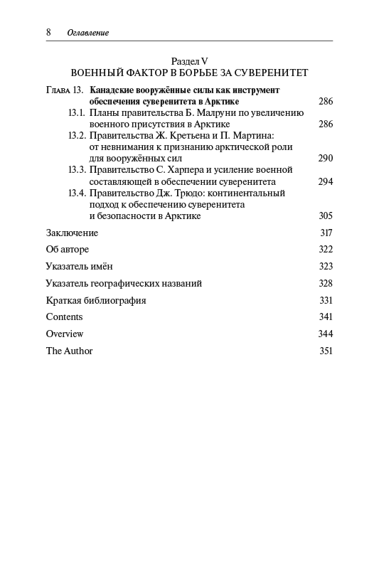 Отдельный раздел книги посвящён роли канадских вооружённых сил в обеспечении суверенитета страны на Крайнем Севере.