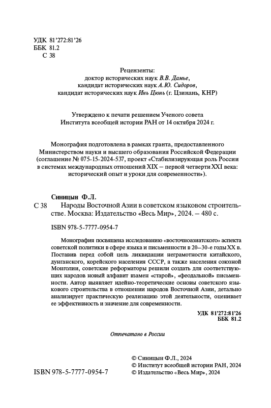 Замечательная книга доктора исторических наук ведущего научного сотрудника ИВИ РАН Федора Леонидовича Синицына о дерзком проекте советских ученых по созданию алфавитов для народов Восточной Азии, а для некоторых и письменности, вышла в свет. Но издательство не имеет право ее распространять, используя «коммерческие» каналы (например, продавая традиционным и электронным библиотекам вузов). Как и целый ряд других замечательных книг (приводим некоторые).