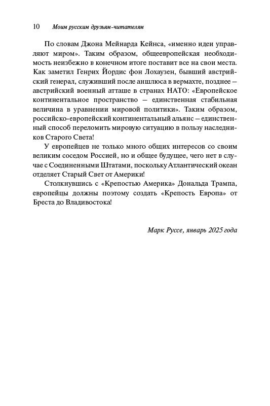 - Евроатлантическая солидарность никогда не была абсолютной. В Европе и особенно во Франции со времен де Голля, или просто Генерала, как его часто называют во Франции, многие выступали за Европу от Бреста до Владивостока! Об этом новая книга яркого французского политического публициста Марка Руссе. Предисловие к книге написал Петр Олегович Толстой.