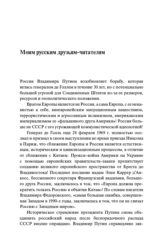 - Россия Владимира Путина возобновляет борьбу, которая велась генералом де Голлем в течение 30 лет, но с потенциально большей угрозой для Соединенных Штатов из-за ее размеров, ресурсов и геополитического положения. Врагом Европы является не Россия, а сама Европа,...