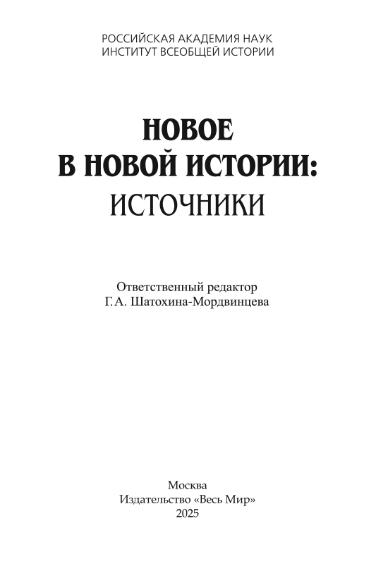 Новое в Новой истории: источники