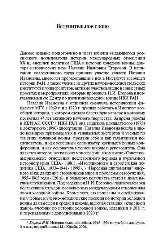 Издание подготовлено в честь юбилея Наталии Ивановны Егоровой – выдающегося ученого, ведущего российского специалиста в области истории международных отношений ХХ в., истории холодной войны и американской внешней политики.
