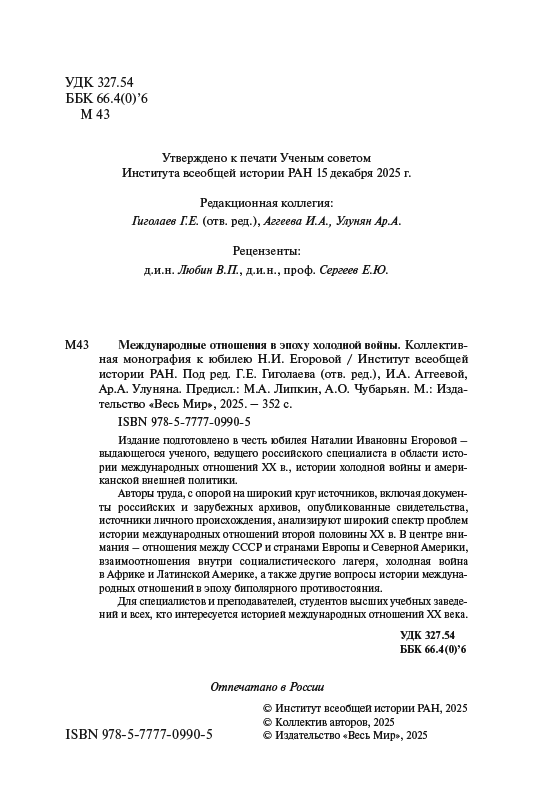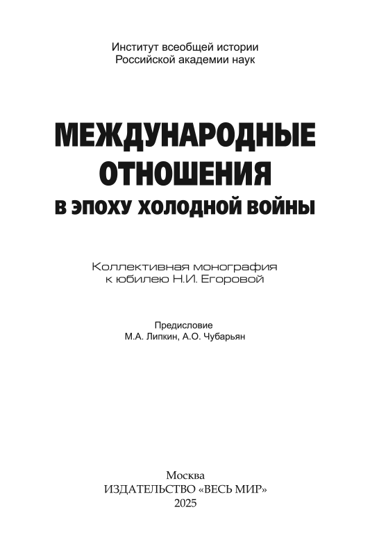 - Об этом и многом другом — новая книга, подготовленная в Институте всеобщей истории РАН: Международные отношения в эпоху холодной войны. Коллективная монография к юбилею Н. И. Егоровой.