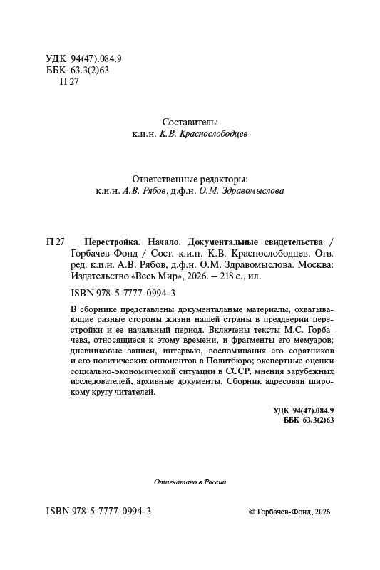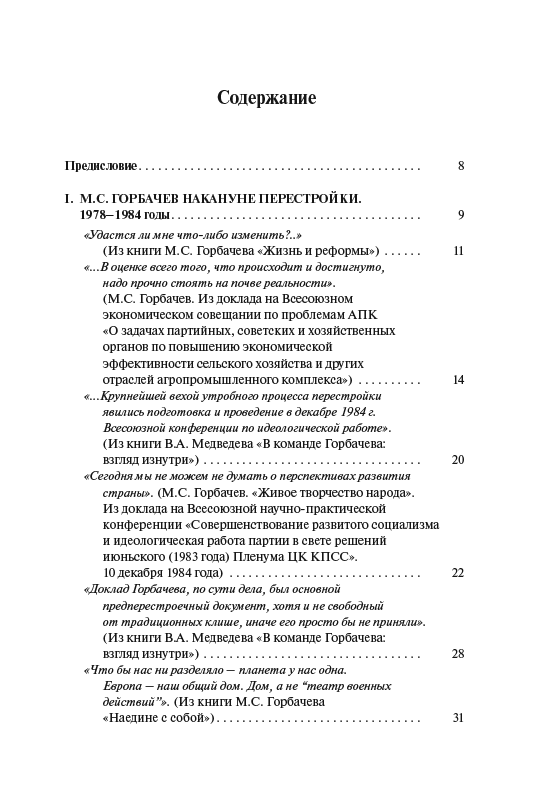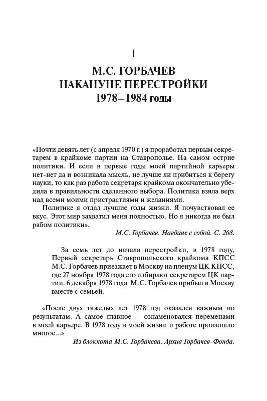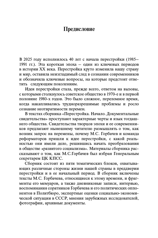 В сборнике представлены документальные материалы, охватывающие разные стороны жизни нашей страны в преддверии перестройки и ее начальный период. Включены тексты М.С. Горбачева, относящиеся к этому времени, и фрагменты его мемуаров; дневниковые записи, интервью, воспоминания его соратников и его политических оппонентов в Политбюро; экспертные оценки социально-экономической ситуации в СССР, мнения зарубежных исследователей, архивные документы. Сборник адресован широкому кругу читателей.