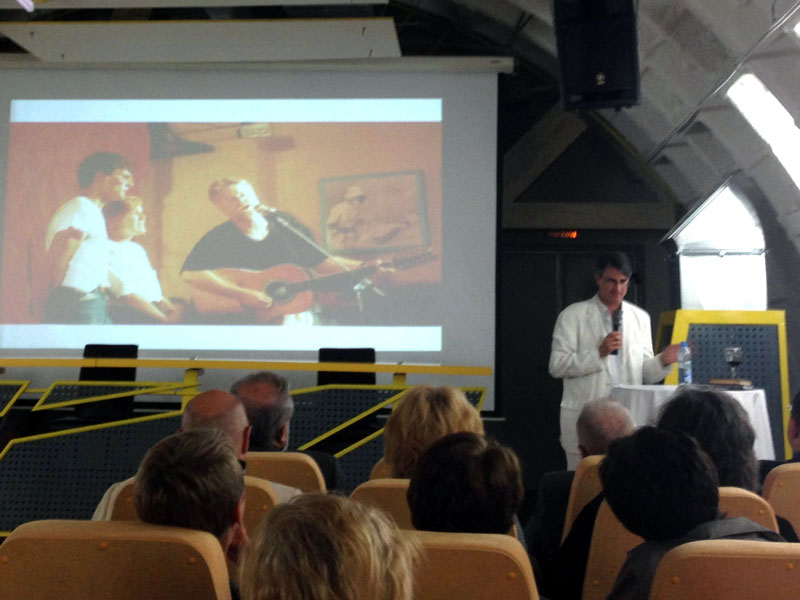 Ну и в-третьих, конечно, сама презентация. Мероприятие проходило на глубине 65 метров в музее холодной войны «Бункер-42», что, несомненно, способствовало созданию нужной атмосферы — эпохи, когда гонка вооружений между СССР и США, создание смертоносного ядерного оружия и возможность в случае необходимости в считанные минуты стереть с лица земли идеологического врага были неотъемлемой частью жизни народов двух сверхдержав. Войдя таким образом «в курс дел», на фоне которых разворачивается история главного героя книги, гости мероприятия с большим интересом прослушали выступление Джастина Лиффландера, который захватил всеобщее внимание рассказом о своей книге и о других интересных случаях из своей «советской» жизни, а также поделился творческими планами.